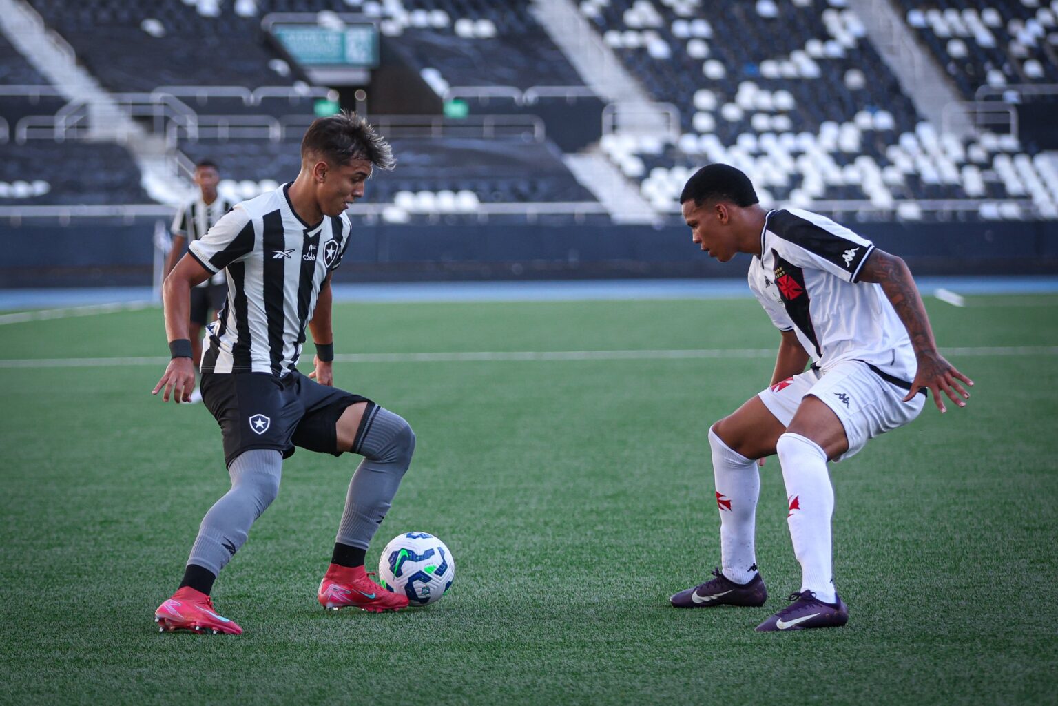 Botafogo e Vasco empataram em 1 a 1, nesta quarta, 28, no Estádio Nilton Santos, pelo Campeonato Brasileiro Sub-17. Miguel Caldas marcou o gol do Alvinegro.