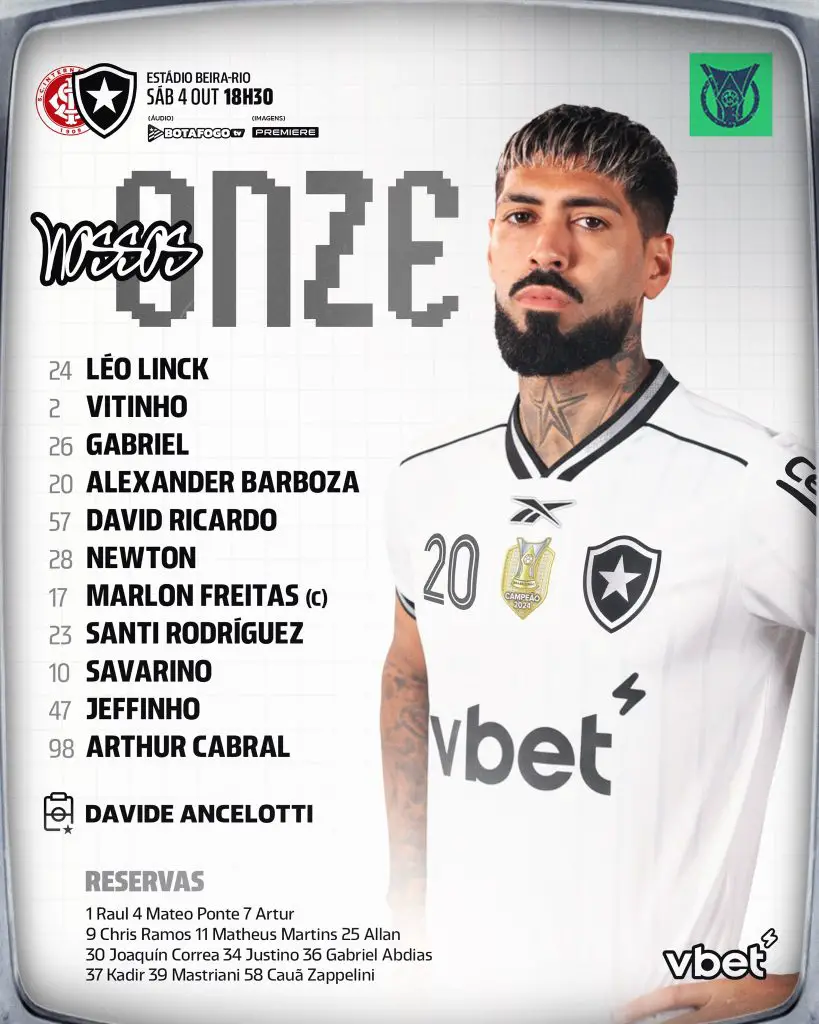 O Glorioso entrará em campo com a seguinte escalação: Léo Linck; Vitinho, Gabriel Bahia, Alexander Barboza e David Ricardo; Newton, Marlon Freitas e Savarino; Santiago Rodríguez, Arthur Cabral e Jeffinho.