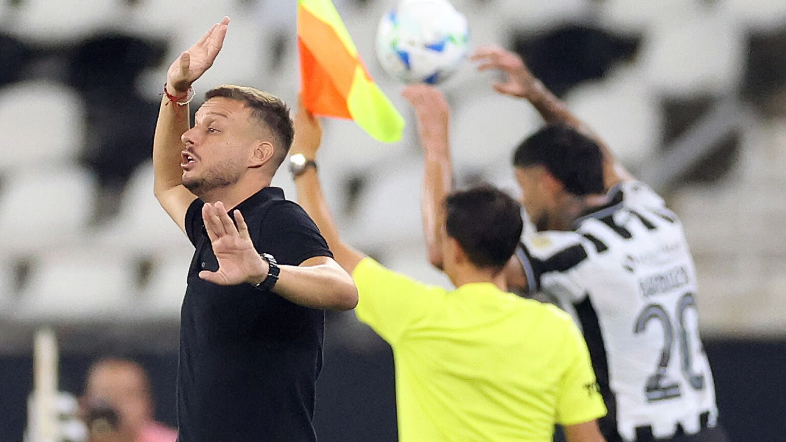 – Acho que tem que olhar melhor. Nós construímos hoje com três, mas no primeiro tempo defendemos com quatro. Ponte jogou de lateral. Então, se eu coloco um zagueiro a mais, não posso defender com quatro. Eu queria defender com quatro. Nós, no primeiro tempo, defendemos no 4-2-3-1, no 4-4-2 às vezes. Mas nós defendemos: Ponte, Bastos, Barboza, Telles; Vitinho, Newton, Danilo, Montoro, Barrera e Martins, 4-2-3-1. Se eu coloco Justino ou Ythallo, não consigo defender dessa forma. Então, tem que olhar. Meu trabalho como treinador é ter todas as possibilidades – iniciou Anselmi.