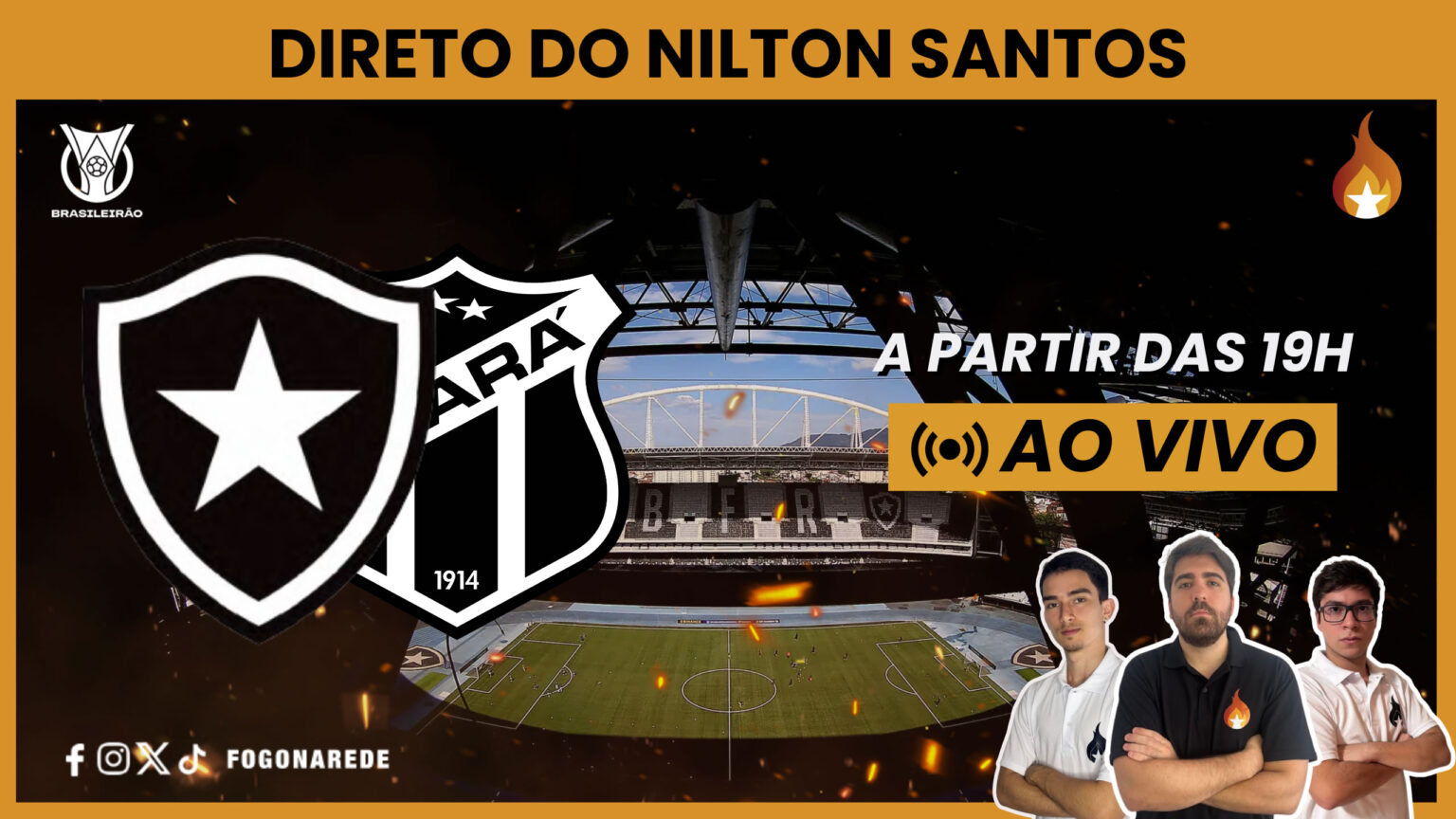 Acompanhe ao vivo a transmissão de Botafogo x Ceará, no Estádio Nilton Santos, pelo Campeonato Brasileiro, no canal de YouTube do Fogo na Rede. Clique no player abaixo e participe!