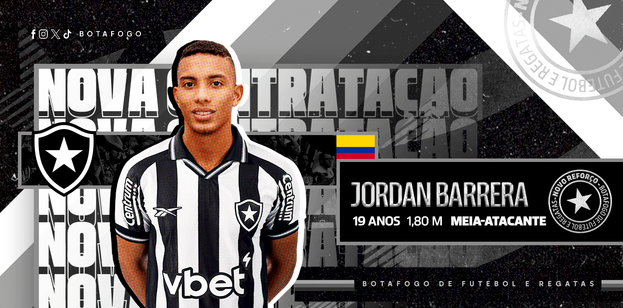 O Botafogo oficializou nesta quinta, 17, a contratação do meia-atacante Jordan Barrera, de 19 anos. O atleta, que chega do Junior Barranquilla, da Colômbia, assinou contrato até o final de 2029 com o Glorioso.