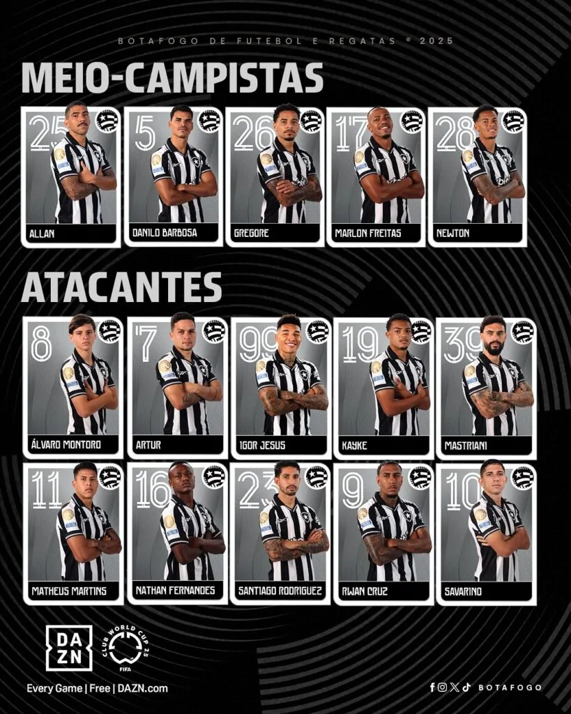 Arthur Cabral, embora tenha assinado com o clube, ainda não foi oficialmente apresentado e também se juntará ao grupo nos Estados Unidos diretamente. O Botafogo está buscando ainda a presença de Joaquín Correa na competição, mas aguarda autorização da Inter de Milão.