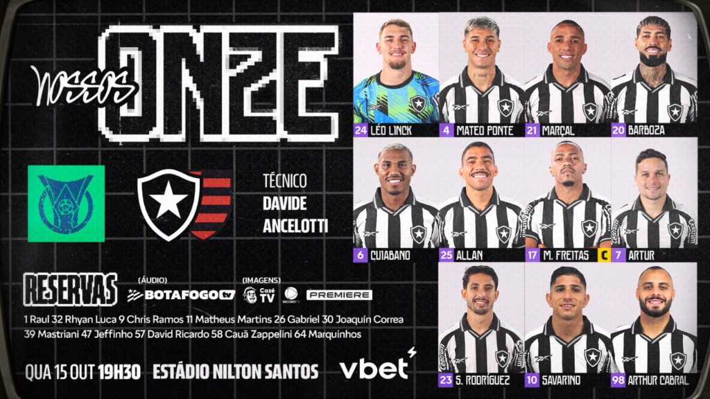 Léo Linck; Mateo Ponte, Alexander Barboza, Marçal e Cuiabano; Allan, Marlon Freitas e Savarino; Artur, Arthur Cabral e Santi Rodríguez.