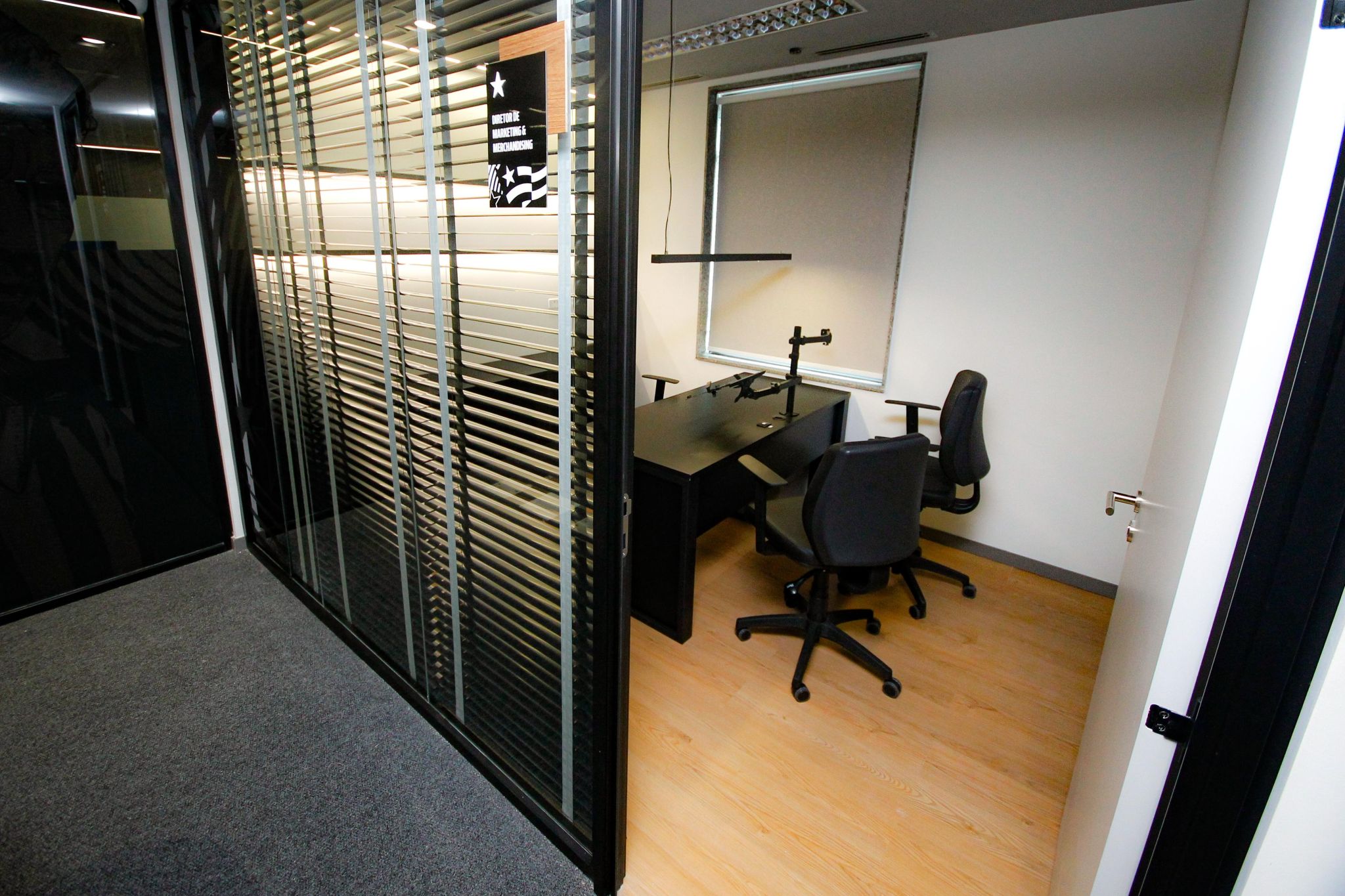 A disposição das salas da diretoria, próximas às equipes, facilita a comunicação e a colaboração. O acesso único pelo 6º andar, com recepção integrada, garante maior segurança e controle na circulação de pessoas. A obra foi fiscalizada internamente, garantindo a correta reciclagem de materiais e o descarte adequado de resíduos orgânicos, reforçando o compromisso do Botafogo com práticas sustentáveis.