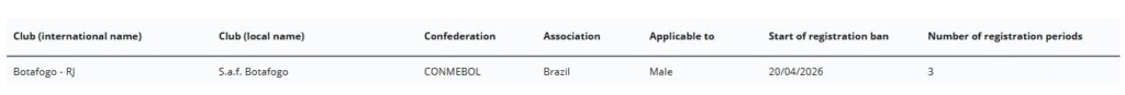 Sob a gestão de John Textor, o clube acumula punições da FIFA. A mais recente foi com o Atlanta United pela dívida na contratação de Thiago Almada, em 2024. As partes chegaram a um acordo, a SAF pagou uma parcela e caiu a punição. Desde então, no entanto, o Alvinegro não pagou o restante.
