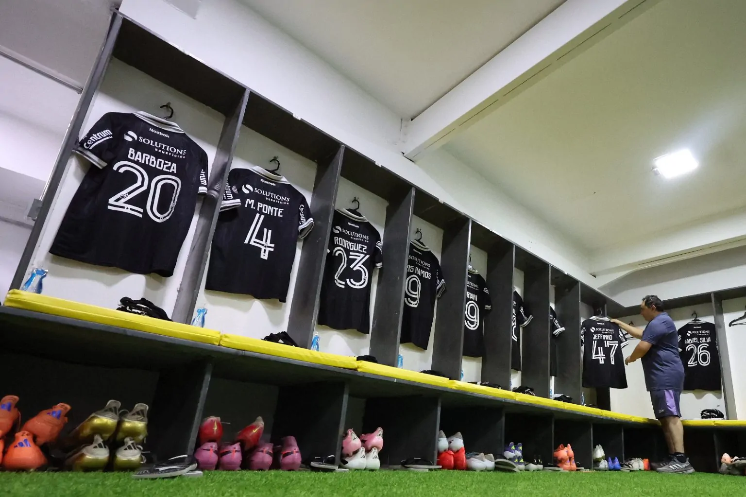 No banco, Raul, Cristhian Loor, Mateo Ponte, Cuiabano, Gabriel, Mastriani, Jeffinho, Marquinhos, Arthur Cabral.
