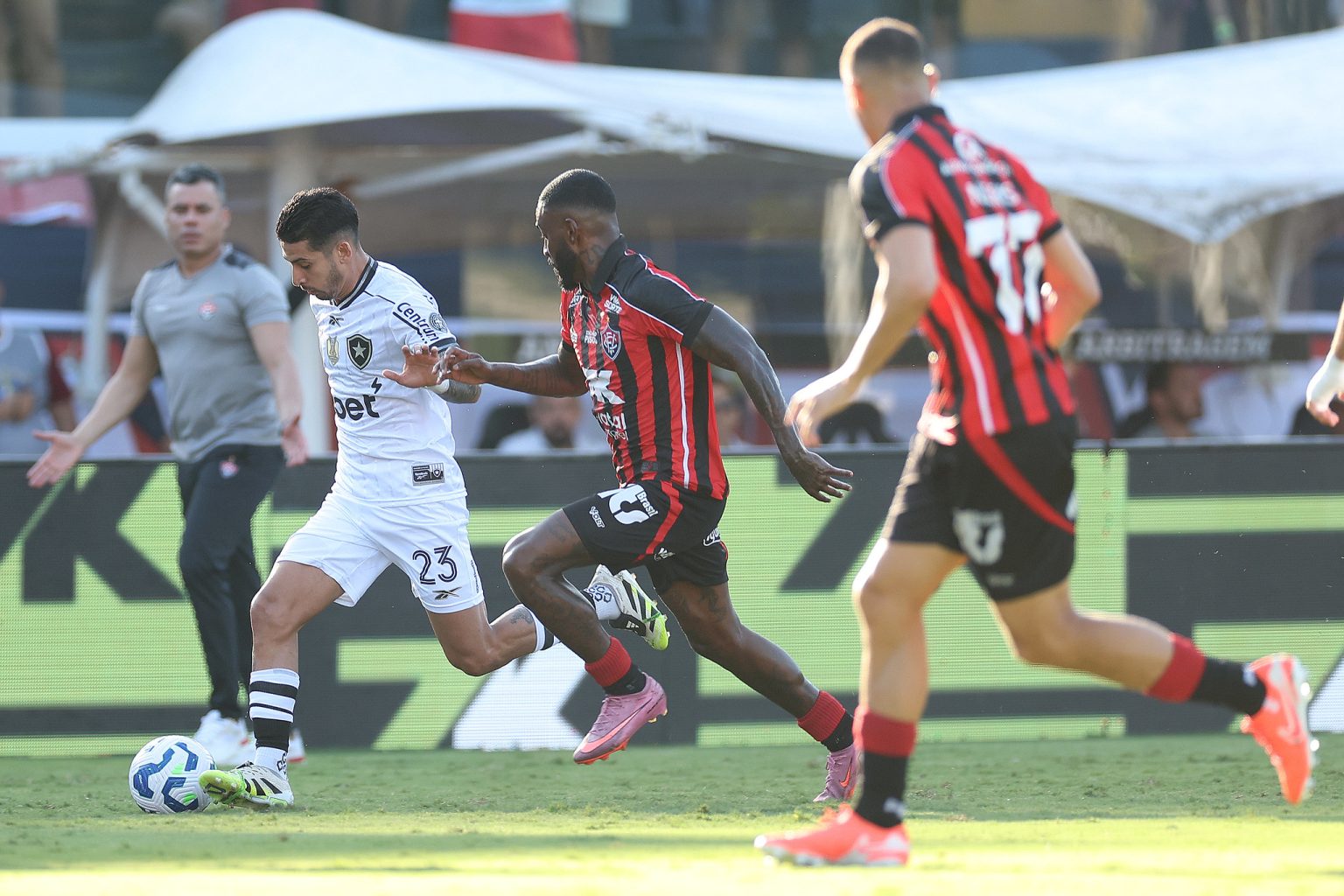 Em jogo sofrível, o Botafogo empatou sem gols com o Vitória, no Barradão, pela 33ª rodada do Campeonato Brasileiro. Para o comentarista Eric Faria, o time perdeu muito com a saída de Santi Rodríguez, aos 28 minutos do segundo tempo, para entrada do volante Newton.