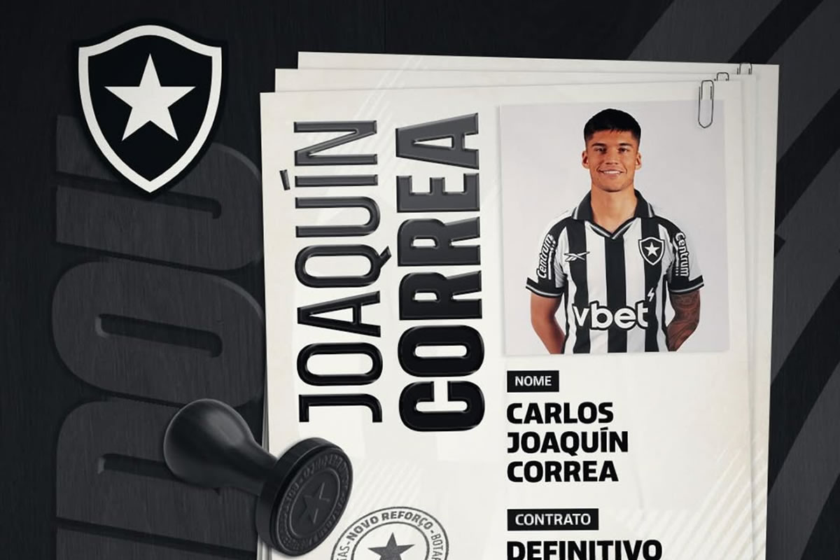 Anunciado nesta terça, Joaquín Correa foi regularizado no Boletim Informativo Diário (BID) e pode estrear pelo Botafogo no Super Mundial de Clubes. Quinto reforço do Glorioso nesta janela, o atacante se apresentou ao clube no Rio e deve se integrar ao elenco nos Estados Unidos nos próximos dias.