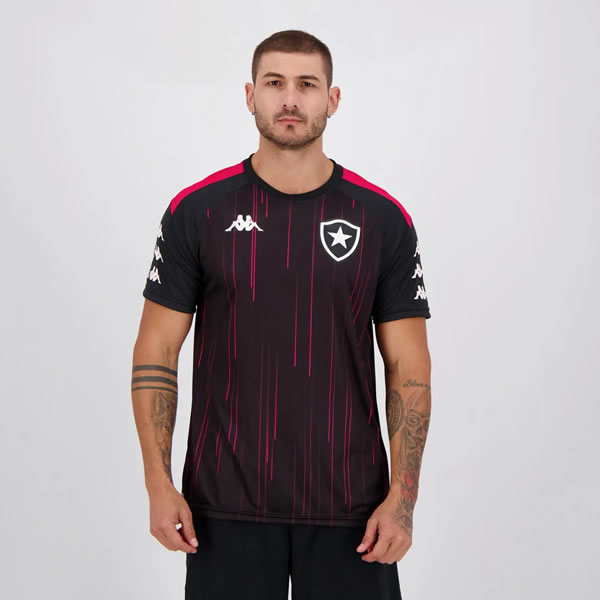 Conforme antecipado pelo Fogo na Rede, a Kappa lançou camisa de treino do Botafogo com detalhes na cor magenta. O item já está à venda em lojas de artigos esportivos e custa R$ 149,90.