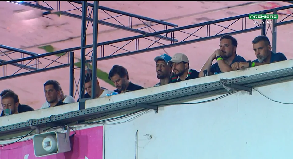 O técnico Martín Anselmi, o zagueiro Alexander Barboza, o goleiro Neto e os laterais Alex Telles e Marçal fizeram questão de marcar presença para acompanhar a estreia do Botafogo no Carioca, contra a Portuguesa, no Estádio Luso-Brasileiro.