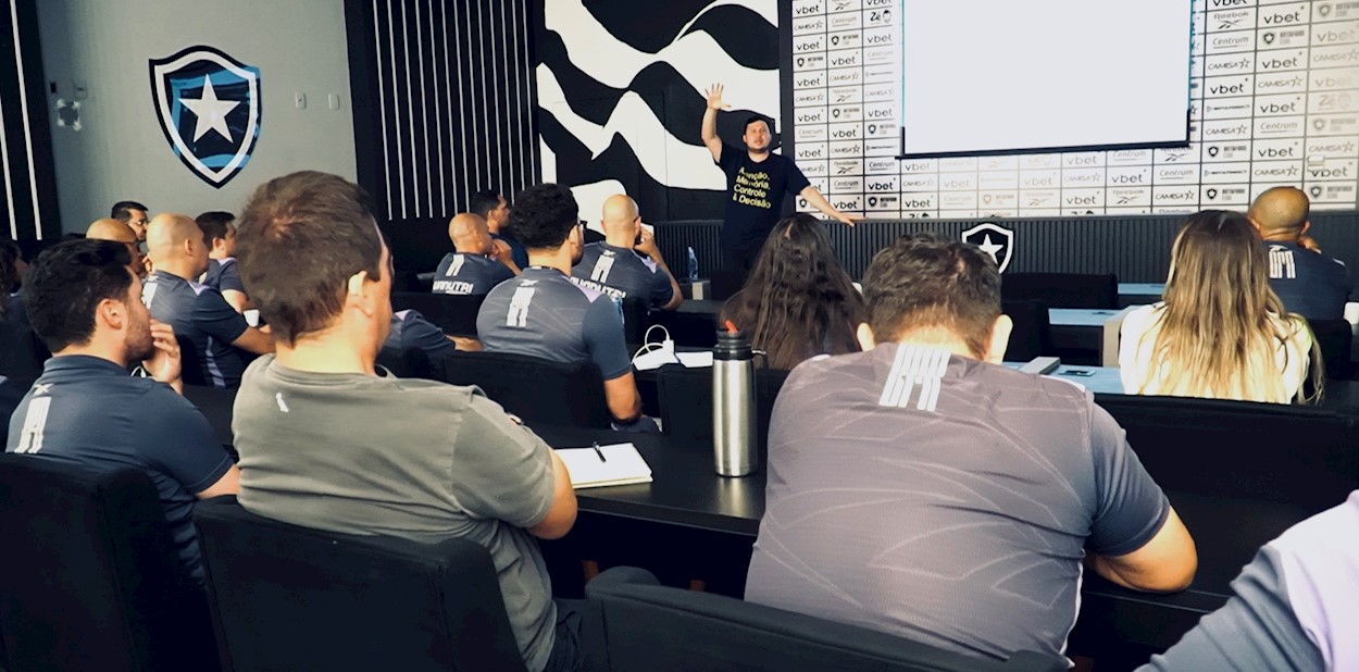 Na última quarta, 1, o Botafogo, em parceria com a Sensorial Sports, empresa que utiliza a neurociência e tecnologia para expandir as capacidades humanas, promoveu uma palestra interativa com todos os profissionais do Núcleo de Saúde e Performance das divisões profissional, de base e feminina do clube.