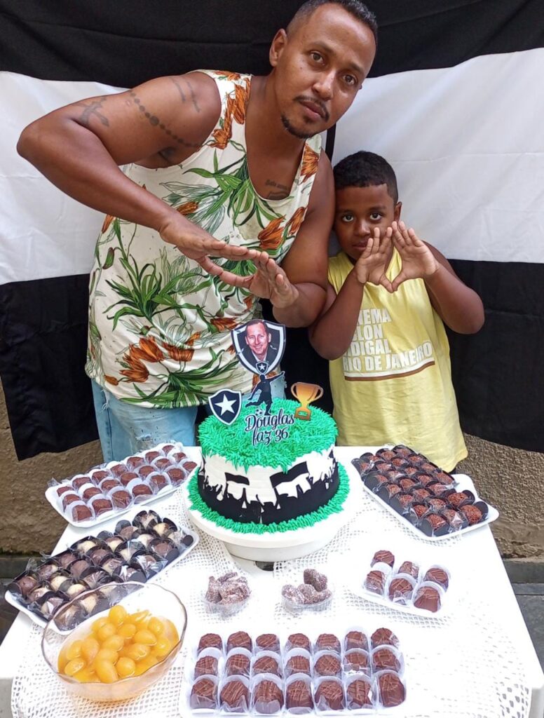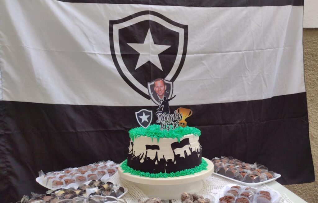 — Estava com plano de fazer meu aniversário na casa de uns tios meus na praia. E seria um churrasco, nada de bolo. Aí eu mudei meus planos faltando uns 10, 15 dias. Resolvi fazer na casa da minha mãe. Minha esposa deu ideia de botar um bolinho também. Concordei. Ela encomendou o bolo, perguntou se teria algum tema, eu disse que não. Faltando uns quatro, cinco dias do aniversário, ela me mostrou o bolo e como seria. E falou que se eu quisesse usar algum tema… lembrou que eu já tinha feito do Botafogo várias vezes, Boteco, por exemplo. Eu disse que não teria – lembrou.